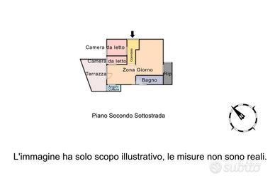 L'immobile vede la seguente distribuzione interna: ingresso/corridoio, ampia zona giorno con angolo cottura, una cameretta, una camera matrimoniale, un bagno finestrato con box doccia e infine un ripostiglio.