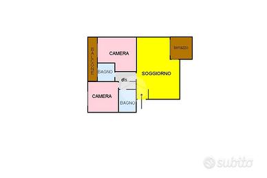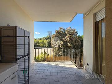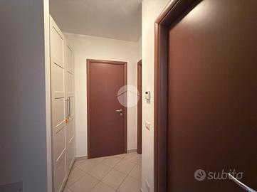 L'appartamento si apre su un ampio soggiorno con angolo cottura, un ambiente accogliente e funzionale che si affaccia su un bel terrazzo, perfetto per momenti di relax o per pranzi all'aperto.
