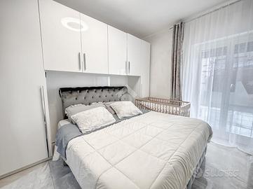 L'immobile vede la seguente distribuzione interna: ampia zona giorno con angolo cottura e affaccio su terrazzo, due camere da letto una delle quali presenta un affaccio su terrazzo e infine un bagno finestrato con box doccia e vasca.
