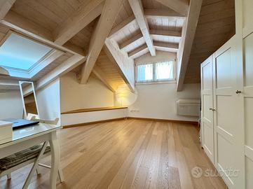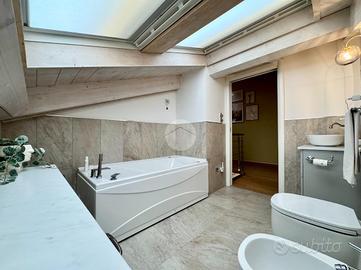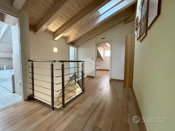 Al secondo piano si sviluppa la zona notte, composta da una spaziosa e luminosa camera matrimoniale, camera singola, zona lavanderia e un secondo bagno finestrato completo di vasca.