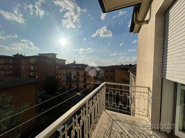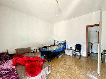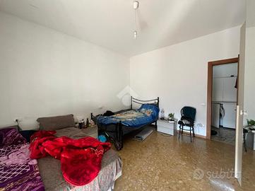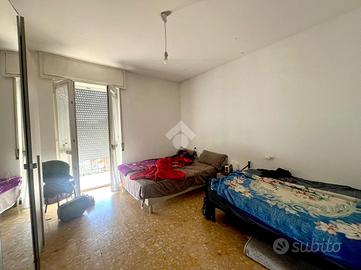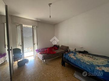 Ingresso con porta blindata, soggiorno open-space con balcone, un bagno e due camere da letto con balcone.