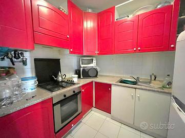 ingresso con porta blindata, soggiorno openspace con angolo cottura, due camere da letto, un bagno e il ripostiglio.