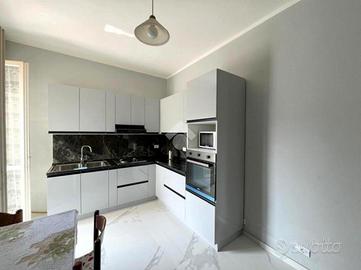 L'appartamento si apre su ambienti ampi e funzionali, caratterizzati da finiture moderne e linee pulite. La cucina nuova, perfetta per chi ama cucinare e condividere momenti in compagnia, si affianca a un soggiorno spazioso e accogliente. Le due camere da letto, anch'esse completamente rinnovate, offrono spazi confortevoli e ben illuminati, ideali per il riposo e la privacy. Il bagno, anch'esso rifatto a nuovo, è elegante e dotato di tutti i comfort.