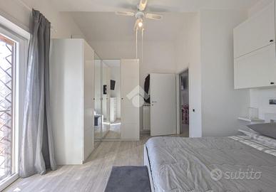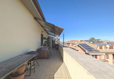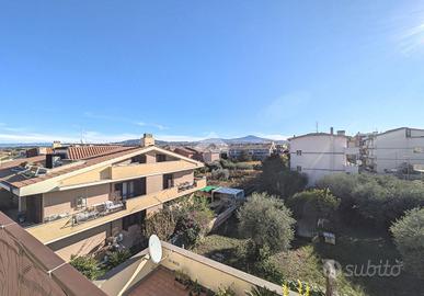 In via A. Olearo, una traversa di via Milano, vicino alla chiesa, le attività commerciali, la stazione dell'Acqua Acetosa e le scuole, proponiamo in vendita un appartamento posto al piano attico, secondo ed ultimo piano di una piccola palazzina in pittura composta da soli 7 appartamenti, senza ascensore e senza condominio. La soluzione è divisa in ingresso, salone, cucina abitabile, 2 camere matrimoniali, bagno. La caratteristica principale di questa casa è la luminosità: ha infatti tripla esposizione (EST - SUD e OVEST) e ogni lato della casa è servito ed ha affaccio e/o uscita su uno spazio esterno. Dalla cucina si accede al terrazzo, abitabile, per mangiare e vivere i momenti di convivialità all'aperto guardando lo splendido panorama che i castelli romani offrono. Il terrazzo prosegue poi nella zona della camera da letto come balcone. Sempre sul terrazzo troviamo un comodo ripostiglio adibito a lavanderia, vano caldaia e deposito. Dal soggiorno invece e dall'altra camera, è possibile uscire su un secondo balcone. Internamente si presenta in buone condizioni, ristrutturato circa 15 anni fa. Gli infissi sono in PVC con i doppi vetri e le finestre sono dotate di cancelletti anti intrusione ed avvolgibili. L'immobile viene venduto con la mobilia presente all'interno di cucina, soggiorno, bagno e cameretta. Ideale quindi per chi cerca immobili da affittare vista la vicinanza con la stazione del treno piuttosto che una casa già pronta per andare ad abitare ammortizzando i costi iniziali. Termoautonomo, l'immobile è dotato di climatizzatori. Completa la proprietà al piano terra con cancello carrabile, un ampia area di proprietà esclusiva da adibire a parcheggio sia di più auto e moto oltre che di Camper vista la dimensione e la comodità d'accesso.