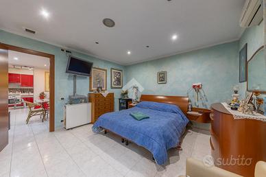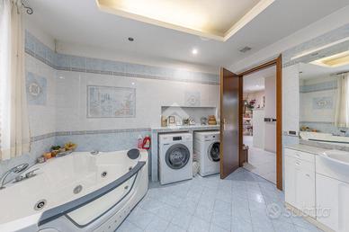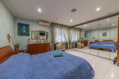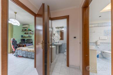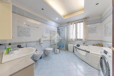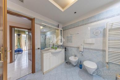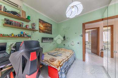 La zona notte è composta da una camera matrimoniale ampia, una cameretta e due bagni, di cui uno particolarmente completo, dotato sia di vasca che di doccia, pensato per offrire il massimo comfort e funzionalità alla vita quotidiana.