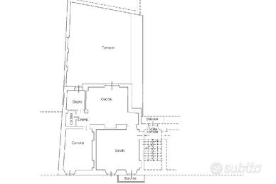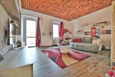 L'appartamento è ubicato al primo piano di un piccolo contesto condominiale di soli tre piani. La porta d'ingresso blindata si apre sul soggiorno, decorato con una meravigliosa volta in mattoni sabbiati; un piccolo balcone ne consente lo sfogo e offre la vista sul vivace corso. La cucina, arricchita da una suggestiva controsoffittatura, è abitabile e gode dell'accesso allo spazio più prezioso dell'abitazione: un terrazzo di 50 metri quadrati, che grazie alla sua esposizione a sud diventa un ambiente ideale da sfruttare durante le belle stagioni. Un piccolo disimpegno conduce alla camera da letto, anch'essa decorata con un soffitto in mattoni a vista. Il bagno è dotato di doccia e corredato di sanitari sospesi. Completa l'appartamento il vano caldaia, accessoriato con allacci per la lavatrice per renderlo uno spazio funzionale.