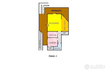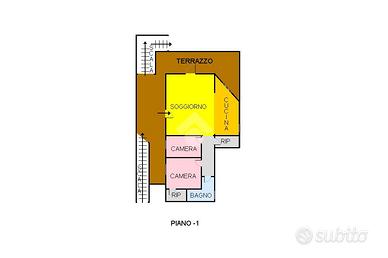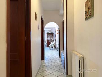 L'appartamento è composto da cucina soggiorno con camino adiacenti ad un terrazzo di 20 metri quadrati di pertinenza esclusiva, due camere di cui una con ripostiglio, bagno e sgabuzzino.