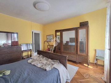 L'alloggio si compone di una cucina abitabile con accesso diretto al terrazzino; l'ampio disimpegno con armadio a muro conduce alle due camere da letto dalle generose dimensioni e al bagno con vasca. Completano la proprietà un secondo balcone e la cantina.