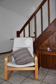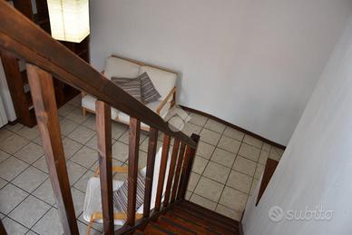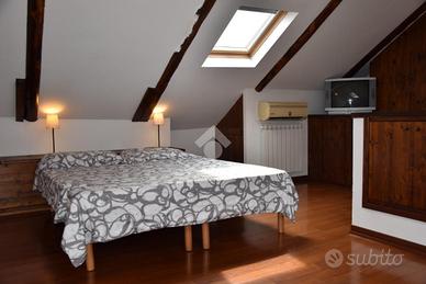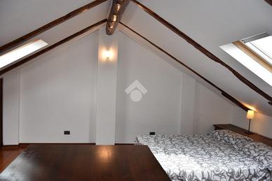 La camera matrimoniale, impreziosita da un elegante parquet, è dotata di un pratico armadio a muro che ottimizza lo spazio ed è situata al piano mansardato collegato da scala in legno di Rovere su misura e dotato di condizionatore. Il soffitto è con travi a vista. Il bagno, moderno e funzionale, è attrezzato con una comoda doccia.