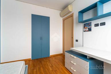 La proprieta' e' dotata di Impianto di Riscaldamento Centralizzato a gestione Autonoma,Tapparelle Elettriche, Impianto di Allarme Volumetrico e Perimetrale, Predisposizione impianto di Condizionamento, Velux Apertura motorizzata, Oscuranti motorizzati, Serramenti in Legno con Doppi Vetri e Zanzariere. Porte interne scorrevoli a incasso. Pavimentazione nella Zona Giorno in Ceramica e nella Parquet nella Camera. Le Spese di condominio ammontano a complessivi 3.300,00 Annui comprensivi dei consumi di Riscaldamento e Acqua. (Si specifica che questo importo e' tarato sugli attuali consumi della proprieta'). La Classe energetica e' B tutt'ora in corso di validita'.