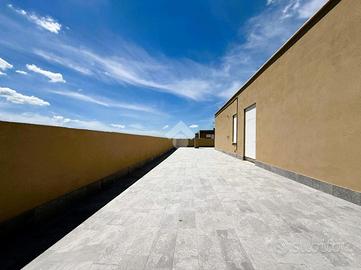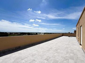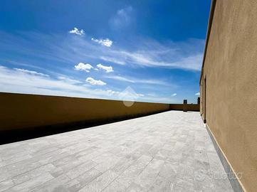 Varcato il primo portoncino troviamo il soggiorno con la prima porta finestra che consente l'uscita sull'ampio terrazzo. Mentre, separata da un tramezzo, troviamo la cucina abitabile, anch'essa con porta finestra per l'uscita verso lo sfogo esterno.