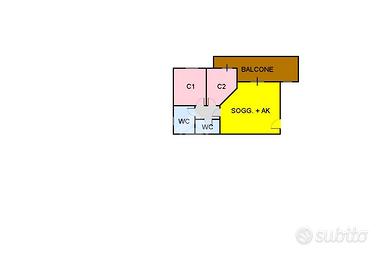 La soluzione è suddivisa in soggiorno con angolo cottura con uscita diretta sul balcone, camera da letto anch'essa con uscita sul balcone, cameretta, due bagni finestrati con doccia.