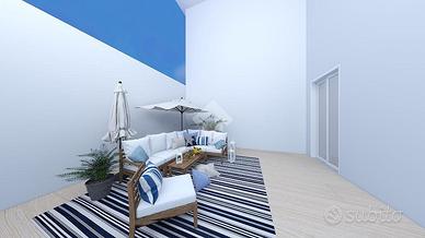Al suo interno gli spazi sono ben distribuiti e funzionali e la zona living si compone di: soggiorno con tripla porta finestra per l'uscita sul balcone e sul terrazzo di mq 41 ca., cucina abitabile, anch'essa con porta finestra verso il secondo balcone di servizio e bagno finestrato con vasca.