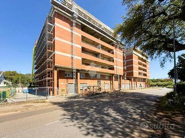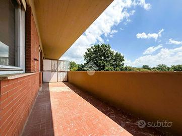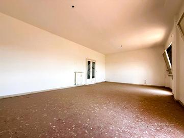 Successivamente troviamo il soggiorno dotato di doppia entrata e con due porte finestre che consentono l'uscita verso il balcone abitabile. Mentre la cucina ha una metratura calpestabile di 14.01, anch'essa con porta finestra verso lo stesso balcone di mq 13.43.