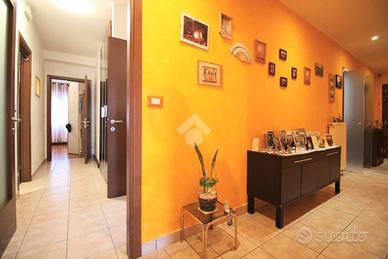 L'ingresso conduce al comodo disimpegno che affaccia alla zona giorno dove si trova la moderna cucina e il luminoso soggiorno con accesso diretto al balcone.