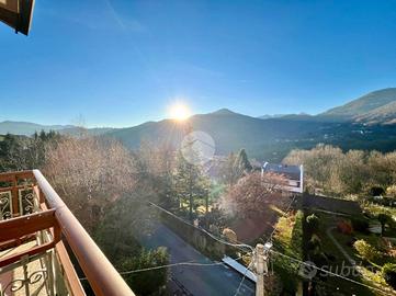 L'appartamento dispone di un balcone che percorre gran parte della facciata esterna, accessibile dagli ambienti principali, e che offre un affaccio aperto sulla vallata e sulle montagne circostanti.