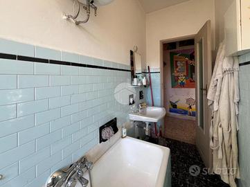 L'ingresso si apre sulla zona giorno, un ambiente luminoso, funzionale. Dal disimpegno si accede alla camera matrimoniale, con pavimento in parquet, e al bagno finestrato, conservato nello stato originale e dotato di vasca.