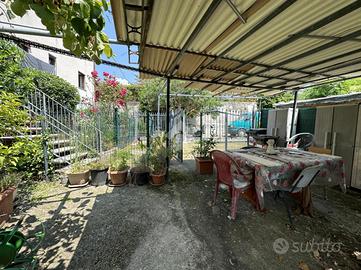 Il giardino, in parte piastrellato ed in parte adibito ad orto è comunicante con l'appartamento.