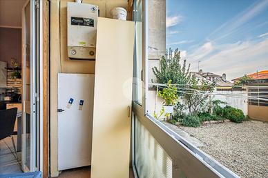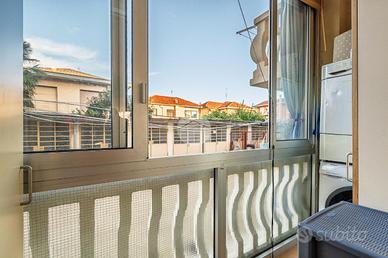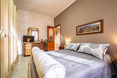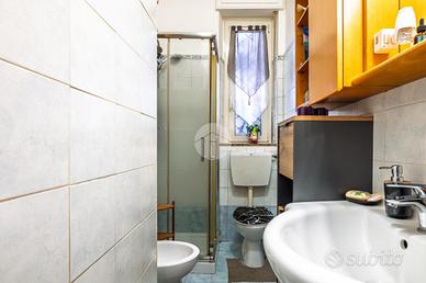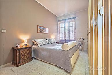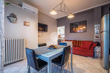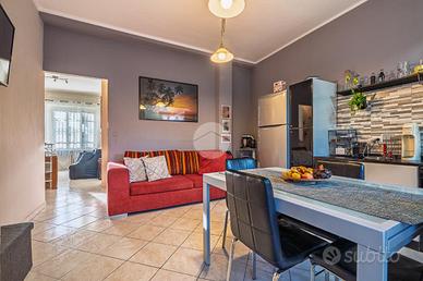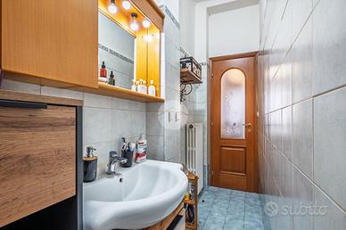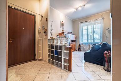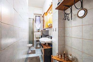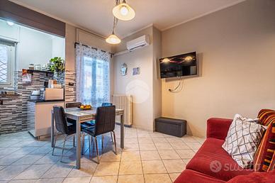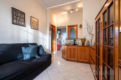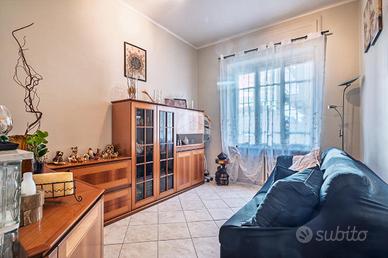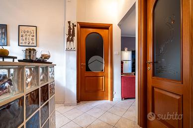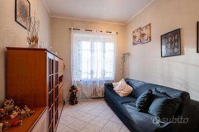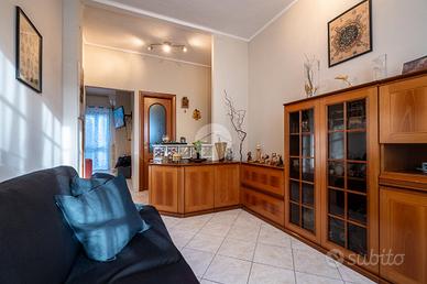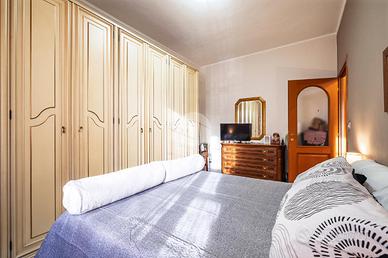Inserito in uno stabile degli anni '60, l'immobile vanta di un ottima distribuzione interna degli spazi. Dal portoncino d'ingresso blindato si accede al disimpegno che separa la zona notte dalla zona giorno composta da soggiorno con cucina a vista e con accesso diretto sul balcone lato interno cortile. La zona notte è caratterizzata da due camere da letto, una attualmente adibita a salotto. Il bagno è finestrato e dotato di box doccia. Gli infissi sono in alluminio doppio vetro, il riscaldamento è autonomo ed è presente anche la predisposizione per il condizionatore. Completa la propietà il box auto e la cantina al piano interrato.