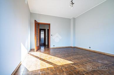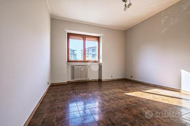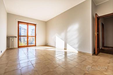 In Corso Francia, contesto signorile anni '70, comodo ai principali servizi ed alla metropolitana Paradiso, ampio trilocale di 93 mq al secondo piano con ascensore. Immobile composto da ampio ingresso che suddivide gli ambienti, tinello con cucinino lineare con accesso al terrazzino lato interno, due ampie camere da letto, di cui una finestrata ed una con balcone, servizio con box doccia finestrato e ripostiglio. La struttura dell'immobile consente di vivere ogni ambiente al meglio, ideale per effettuare diverse distribuzioni degli spazi interni, inoltre sono stati rivisti da poco impianti e bagno, presente anche condizionatore nella zona giorno. Completa la cantina di pertinenza.