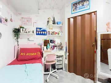 L'ingresso ci accompagna nel soggiorno con angolo cottura dove troviamo anche un comodo ripostiglio mentre, ben separata troviamo la zona notte composta da camera matrimoniale, studio (attualmente adibito a camera singola) e bagno con box doccia.