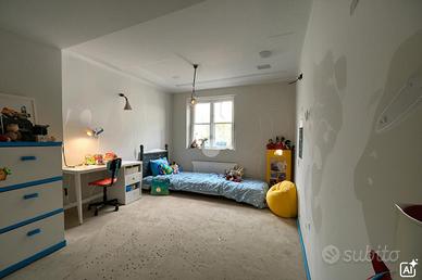 Il disimpegno conduce alla zona notte caratterizzata dalla camera matrimoniale con bagno padronale cieco, spaziosa camera da letto e bagno finestrato con doccia.