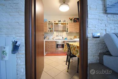 Entrando troviamo un luminoso soggiorno con sfogo su un terrazzino vivibile collegato alla cucina abitabile.