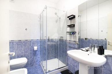 La soluzione è così composta: ingresso su ampio soggiorno, cucina separata, disimpegno, una camera da letto matrimoniale con accesso al bagno privato finestrato con box doccia, una camera singola ed un ulteriore bagno cieco con box doccia.