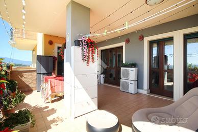 Troviamo inoltre un luminoso terrazzo abitabile con triplo accesso ed esposizione a sud.