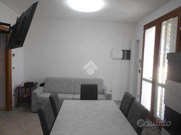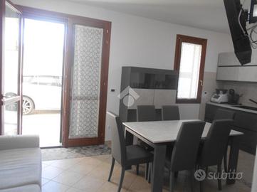 Porto Garibaldi: in contesto residenziale di sole quattro unita' immobiliari proponiamo appartamento posto interamente al piano terra con ingresso indipendente. Portico angolare con ripostiglio. Barbecue. Ingresso su soggiorno con angolo cottura, camera da letto matrimoniale, camera singola, bagno con box doccia. Impianto di riscaldamento con camino canalizzato e impianto di condizionamento. Piccola corte sul retro con porticato. Arredata, impianto d'allarme. Basse spese condominiali.
