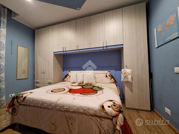 La zona notte ospita due ampie camere da letto, un bagno finestrato e un ripostiglio soppalcato che ottimizza gli spazi.