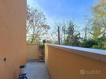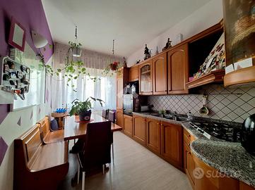 La zona giorno è accogliente e ben distribuita: l'ampio soggiorno affaccia sul balcone, perfetto per momenti di relax godendo di una piacevolissima vista panoramica, mentre la cucina abitabile, separata e funzionale, permette di vivere pienamente la convivialità della casa.