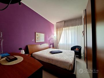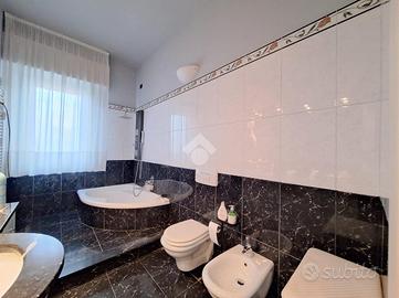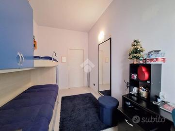 La zona notte si compone di una camera matrimoniale con bagno privato cieco, una spaziosa cameretta ed un secondo bagno finestrato e dotato di comoda vasca angolare e sanitari sospesi, dettagli che aggiungono un tocco di comfort e modernità.