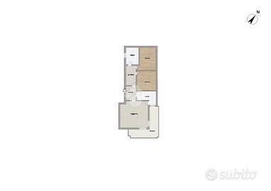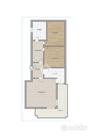 L'affaccio interno regala tranquillità e una vista panoramica, lontana dal rumore cittadino. L'ingresso ampio e il corridoio accompagnano armoniosamente alla zona notte, dove troviamo due camere di ampia metratura e un bagno spazioso, come evidenziato dalla planimetria.