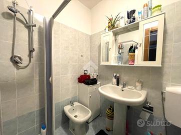 Un pratico disimpegno conduce alla zona notte, dove troviamo una spaziosa camera matrimoniale, una camera singola e un bagno cieco dotato di box doccia e attacchi per la lavatrice.