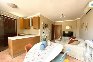 L'immobile è composto da un'accogliente zona giorno con soggiorno e cucina a vista, climatizzata per garantire il massimo comfort in ogni stagione.