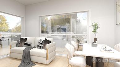Riscaldamento e raffrescamento a pavimento centralizzato. Ventilazione meccanica controllata con deumidificazione. Pompa di calore autonoma. Impianto fotovoltaico condominiale con quota autonoma per ciascuna unità. Isolamento acustico perimetrale per ogni appartamento. Frangisole motorizzati. Serramenti in Classe A. Videocitofono smart. Predisposizione antifurto. Accesso agevolato per persone con disabilitàBox e cantine