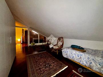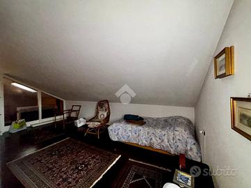 La zona notte si compone di una camera matrimoniale servita da terrazzo, il bagno finestrato con doccia e proseguendo al piano superiore una seconda camera mansardata e un bagno finestrato con vasca idromassaggio.