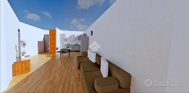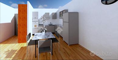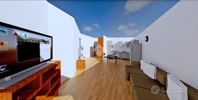 L'ingresso apre su una comoda zona living open space, ideale per accogliere cucina e soggiorno, con accesso diretto a uno spazio esterno privato perfetto per il relax.