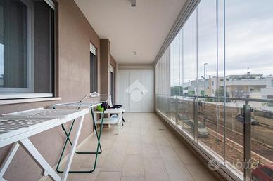 In un contesto residenziale moderno e ben strutturato, nelle immediate vicinanze di Club2000, proponiamo in vendita un trilocale luminoso e funzionale, inserito all'interno di uno stabile condominiale di recente costruzione, realizzato nel 2023, un edificio che riflette gli standard abitativi più contemporanei, sia in termini di comfort che di efficienza, caratterizzato da linee moderne, soluzioni costruttive aggiornate e impianti di ultima generazione, pensati per offrire qualità abitativa e contenimento dei consumi. L'appartamento, posto al primo piano, sviluppa una superficie interna di 105 mq e colpisce fin dal primo ingresso per la sensazione di ariosità e continuità tra gli ambienti. L'accesso si apre su un ampio soggiorno con cucina open space, uno spazio pensato per essere vissuto ogni giorno, dove luce e funzionalità convivono senza compromessi. La zona giorno gode di doppio affaccio su due verande ampie e ben sfruttabili, vere estensioni della casa, di cui una accoglie la zona lavanderia: due spazi protetti e versatili, utilizzabili in ogni stagione grazie alle vetrate VEPA, che lasciano entrare la luce naturale garantendo allo stesso tempo riparo e comfort. In cucina è presente anche un comodo ripostiglio, mentre nel soggiorno un armadio a muro risolve con intelligenza ogni esigenza di contenimento, mantenendo gli spazi ben ordinati e puliti. La zona notte è ben separata e si raggiunge attraverso un corridoio che conduce a due camere da letto e a due bagni padronali, entrambi finestrati e completi di box doccia, una scelta che rende la casa pratica sia per famiglie sia per chi desidera ambienti distinti e ben organizzati. L'immobile gode di doppia esposizione; dal punto di vista tecnologico ed energetico, la casa è in classe energetica A3, con impianto di riscaldamento a pavimento alimentato con pompa di calore e impianto di raffrescamento e riscaldamento canalizzato, a garanzia di efficienza, comfort e gestione ottimizzata dei consumi. Completa la p