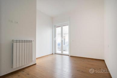 La zona notte è composta da due camere da letto spaziose e ben proporzionate, pensate per garantire privacy e comfort, entrambe facilmente arredabili con soluzioni moderne e funzionali. Il bagno, completo e rifinito con materiali di pregio, rappresenta un perfetto equilibrio tra design e praticità, con finiture curate e moderne, adatte a ogni esigenza.
