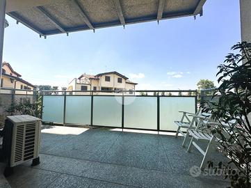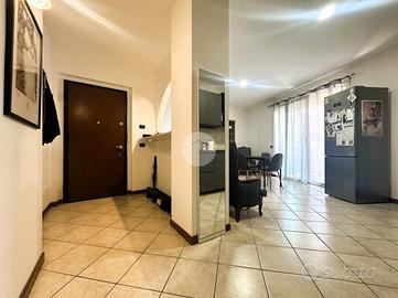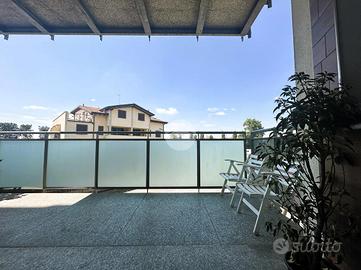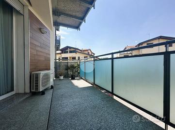 Corbetta: all'interno di un quartiere residenziale estremamente fornito di negozi, supermercati, mezzi pubblici e servizi essenziali per la persona. In complesso condominiale totalmente riqualificato nel 2010 ed in classe energetica 'B'. Il contesto è totalmente privo di barriere architettoniche con ascensore condominiale disponibile fin dal piano seminterrato. Appartamento con esposizione obliqua, rispetto ai punti cardinali, e conseguente comodità nel beneficiare di luce e sole durante tutto l'arco della giornata. All'ingresso, tramite portoncino blindato, accediamo alla zona living con un comodo e funzionale soggiorno e relativa cucina a vista. La zona giorno, dotata di pareti lineari e relativa facilità d'arredo, risulta estremamente luminosa grazie all'ampia porta finestra, con anta scorrevole, che consente l'accesso ad un godibile terrazzo coperto privato e dalle ragguardevoli dimensioni e con ottima godibilità. La zona notte la si raggiunge tramite disimpegno sfruttabile grazie ad una pratica e capiente nicchia dove poter adattare un armadiatura estremamente utile. La camera matrimoniale, completa di balcone, risulta squadrata e facilmente arredabile anche in presenza di arredi voluminosi. La cameretta non è da meno; si presta comodamente ad essere sfruttata sia come stanza da letto doppia che come ampio studio. Il bagno padronale, rifinito da eleganti rivestimenti in mosaico, è accessoriato da vasca e completo di sanitari sospesi oltre che da un'utilissimo termoarredo elettrico. La presenza di un secondo bagno, molto gettonato, rende ancor più comoda la vivibilità dell'appartamento. Gli infissi sono tutti in PVC, anche con apertura a Vasistas, e pratiche tapparelle. L'impianto d'aria condizionata è presente in parte dell'abitazione, con possibilità di implementarlo grazie alla presenza di predisposizioni. Il riscaldamento è a pannelli radianti sotto pavimento e viene gestito privatamente tramite un termostato ambiente presente all'interno dell'immobile. U...