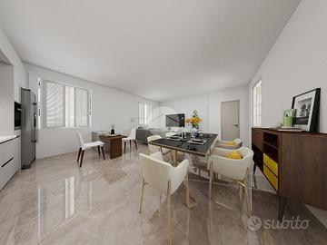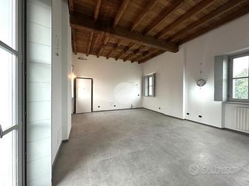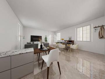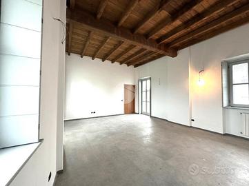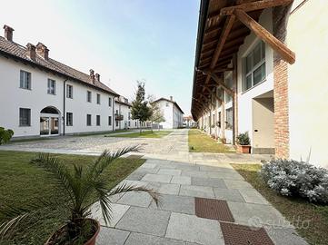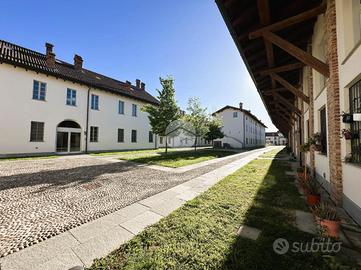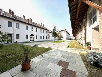 Corbetta: nel cuore del centro storico della Città, in contesto di corte del 1500, protetto dal Ministero dei Beni Culturali, impreziosito da antichi affreschi e caratterizzato da elementi architettonici quali zoccolature in pietra di Luserna e coperture in coppi antichizzati, che riportano all'origine dell'epoca cinquecentesca dell'esterno degli edifici e restituiscono all'intera comunità cittadina un angolo storico e artistico di pregevole interesse. Appartamento completamente ristrutturato con possibiltà di scelta della pavimentazione e delle porte interne. Distribuito su unico livello. Grazie ad una doppia porta blindata, una condominiale e l'altra privata, si accede all'interno dell'abitazione direttamente dall'interno della corte d'epoca dove è consentito il solo passaggio ciclo-pedonale. All'ingresso veniamo accolti nell'ampio salone con cucina a vista; notiamo subito l'eleganza del soffitto, ripreso in tutta la casa, rifinito con caratteristiche travi a vista in legno e sabbiate. Ben 4 finestre, con doppia esposizione, rendono l'ambiente particolarmente luminoso e soleggiato. Il disimpegno, anch'esso con affaccio esterno sulla corte, ci conduce al reparto notte. Le 2 camere da letto beneficiano di un gradevole e riposante affaccio sul parco della villa adiacente. Completa la soluzione un bagno accessoriato da doccia. Gli Infissi della casa sono in legno con doppi vetri e caratteristici e storici scuri interni, oltre alla predisposizione dell'impianto d'aria condizionata. Il riscaldamento è gestito da caldaia condominiale, con termostato privato, il tutto con la presenza di caratteristici termosifoni in ghisa che, grazie all'ottimizzazione dei consumi e delle calorie, cotribuiscono a contenere i consumi. A parte è possibile l'aquisto di un box autorimessa posto al piano interrato e, di conseguenza, coperto. Si specifica che i Render che troverete nell'annuncio sono a solo scopo illustrativo.