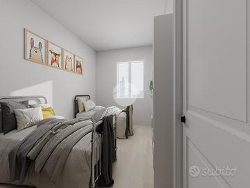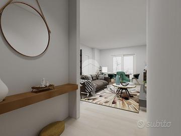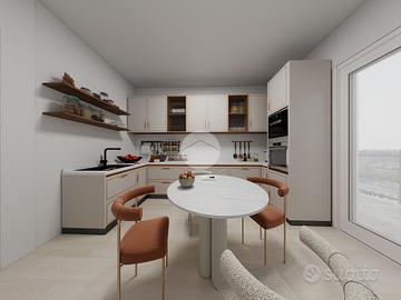 Corbetta: in quartiere residenziale posto in zona strategica per raggiungere, comodamente a piedi, sia la Stazione ferroviaria che la fermata dell'autobus. In contesto abitativo di nuova concezione in Classe Energetica 'A', totalmente privo di barriere architettoniche, con ascensore fin dal piano cantine. Appartamento caratterizzato dalla luminosa e doppia esposizione. All'ingresso veniamo accolti in uno spazioso soggiorno con pareti lineari che donano alla zona living ottima arredabilità; grazie. un'ampia porta finestra, ad anta scorrevole, si accede ad un gradevole terrazzo, ideale nella bella stagione. La cucina è comodamente abitabile e, grazie ad una porta finestra, beneficia anch'essa di un godibile terrazzino. La presenza di un pratico secondo bagno, con relativo antibagno, lo rende ideale per essere destinato anche ad uso lavanderia; sono presenti sanitari sospesi, piatto doccia e comodo termoarredo elettrico. Il disimpegno ci conduce alla zona notte; qui troviamo una camera matrimoniale, una comoda cameretta, utilizzabile anche come doppia data la metratura generosa. Il bagno padronale, anch'esso dotato di sanitari sospesi, un generoso piatto doccia ed un termoarredo elettrico. La totale assenza di gas e di fiamme libere all'interno dell'immobile, rende ancora più sicura e funzionale la vivibilità. Finiture interne di ultima generazione con possibilità di personalizzazione. Il riscaldamento è realizzato in pompa di calore abbinato a caldaia a condensazione condominiale. Negli appartamenti sono presenti termostati, in ogni locale, per la gestione autonoma della temperatura, oltre a pannelli fotovoltaici posizionati sul tetto per la produzione d'energia elettrica per le parti comuni. Per il raffrescamento l'appartamento verrà dotato d'impianto a pavimento integrato da deumidificatore degli ambienti; è inoltre prevista la predisposizione per l'impianto d'antifurto perimetrale. Le porte interne, compresa quella blindata, ed i battiscopa saranno di color bian...