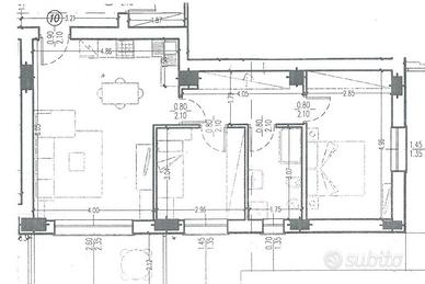 L'ingresso è dotato di porta blindata con pannello interno laminato bianco, serratura di sicurezza europea, soglia mobile e spioncino grandangolare. Le porte interne sono cieche, in laminato bianco, con apertura a battente.