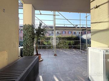 L'ingresso conduce a una zona giorno accogliente e molto luminosa, grazie all'ottima esposizione e alle ampie aperture verso l'esterno. Dal soggiorno si accede direttamente a una splendida terrazza di circa 35 mq, uno spazio ideale per pranzi all'aperto, momenti di relax o convivialità con amici e famiglia.