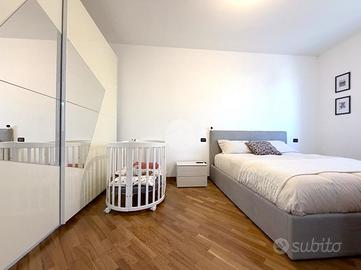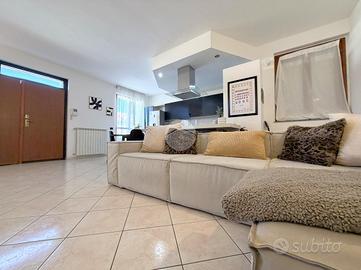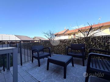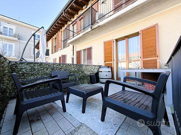 Corbetta: in frazione Cerello. In contesto condominiale di dimensioni contenute edificato nel 2008. Appartamento caratterizzato da generose metrature interne e da tripla esposizione. L'ingresso alla proprietà è indipendente e da accesso al giardino privato, il quale si presenta con aree destinate a verde ed altre terrazzate con metrature sfruttabili ma non dispersive. La porta blindata ci conduce all'interno dell'appartamento; il primo impatto rende subito l'idea della qualità dell'abitazione. Il soggiorno con relativa cucina a vista è di dimensioni davvero ragguardevoli e con uscita su un pratico e godibile terrazzo. La zona giorno è inoltre completa di una bagno con doccia, oltre alla possibilità di adattare comodamenente lavatrice ed asciugatrice. Il disimpegno ci conduce al reparto notte dove troviamo una camera matrimoniale, una cameretta con uscita sul secondo terrazzo della casa ed un bagno padronale completo di vasca. ll riscaldamento è semi-autonomo, con centrale termica unica, e contabilizzatori di calorie per monitorare i consumi ed ottimizzare i costi. La casa è rifinita con ceramica chiara in tutti i locali, gli infissi sono in legno con doppi vetri ed accessoriati da zanzariere e persiane. All'interno dell'appartamento rimangono inclusi sia l'impianto d'aria condizionata nella zona giorno e in camera matrimoniale che parte dell'arredamento. Completa la soluzione un box autorimessa.