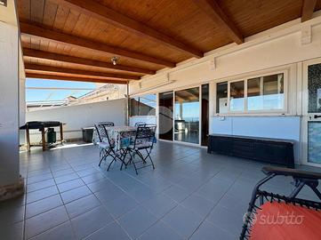 La chicca dell'appartamento è senz'altro la terrazza di comoda metratura, perfetta per chi cerca uno sfogo esterno da poter sfruttare per pranzi e cene all'aperto godendo della brezza marina, inoltre la pergola in legno che copre l'intera veranda garantisce ombra e frescura anche durante le ore più calde del giorno. Dalla terrazza accediamo ad uno spazioso ripostiglio esterno.