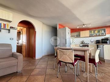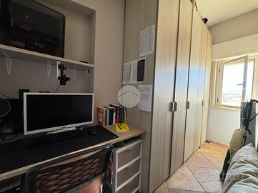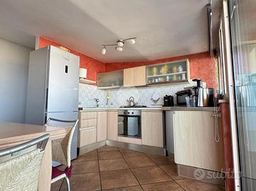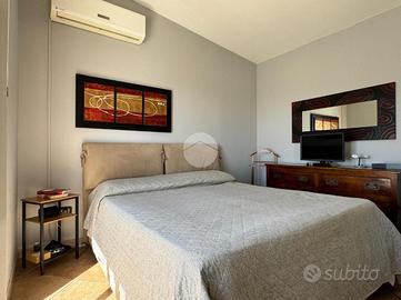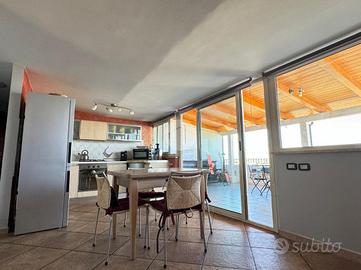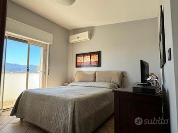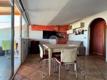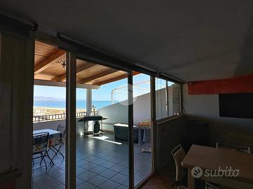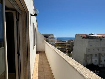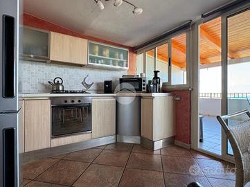 La doppia esposizione dell'appartamento garantisce ventilazione e luce a tutte le ore del giorno. L'immobile si presenta in ottime condizioni interne ed è così disposto: ingresso in corridoio dove sulla sinistra troviamo una piccola lavanderia, più avanti la zona giorno composta da un comodo openspace climatizzato con angolo cottura a vista e zona living con vetrate con affaccio sulla terrazza, la zona notte invece presenta una camera matrimoniale climatizzata con balconcino con vista mare, una camera singola (attualmente adibita a studio) e bagno.