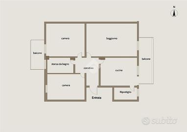 Dal portone principale, giungiamo nel grande disimpegno dove accediamo nell'ampio salone con adiacente la comoda cucina abitabile completa di balcone panoramico e ripostiglio finestrato. Proseguendo troviamo due camere da letto matrimoniali ed un bagno dotato di vasca.